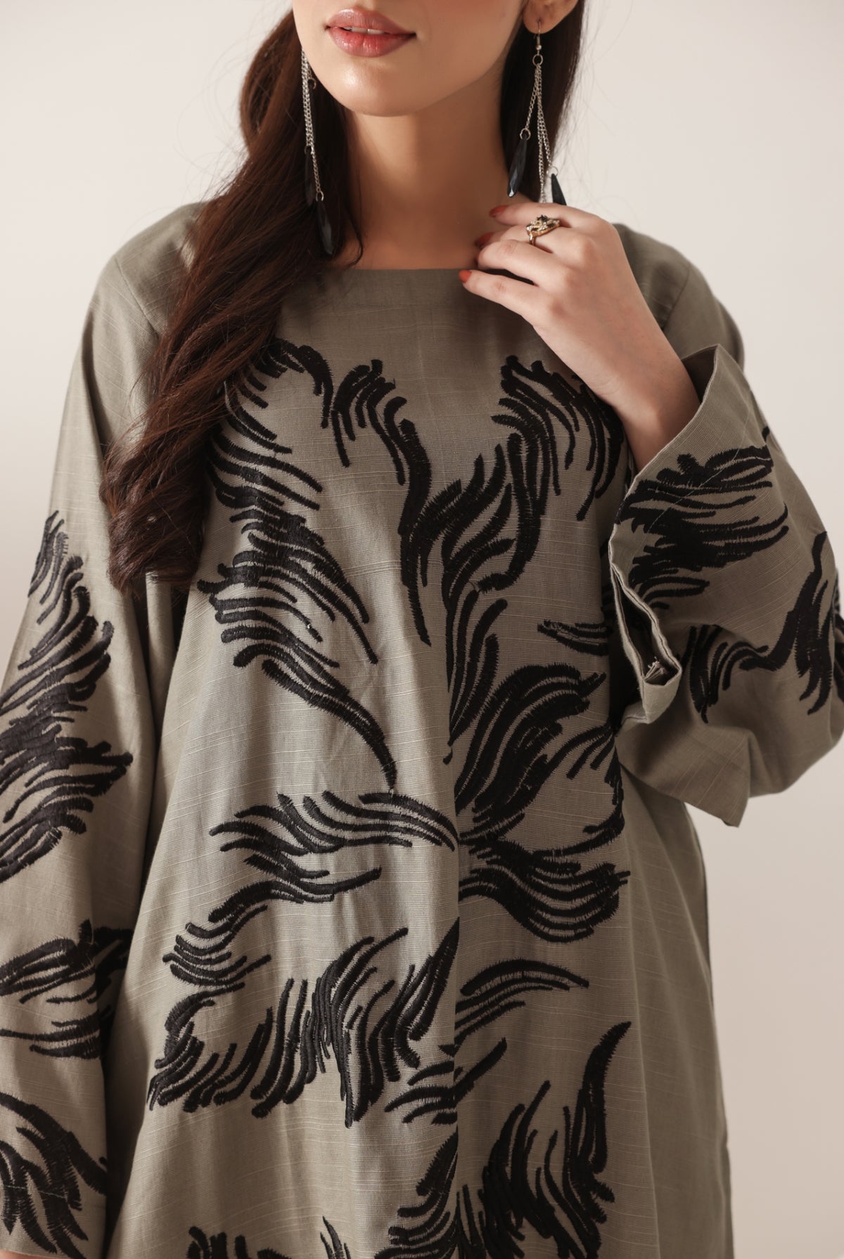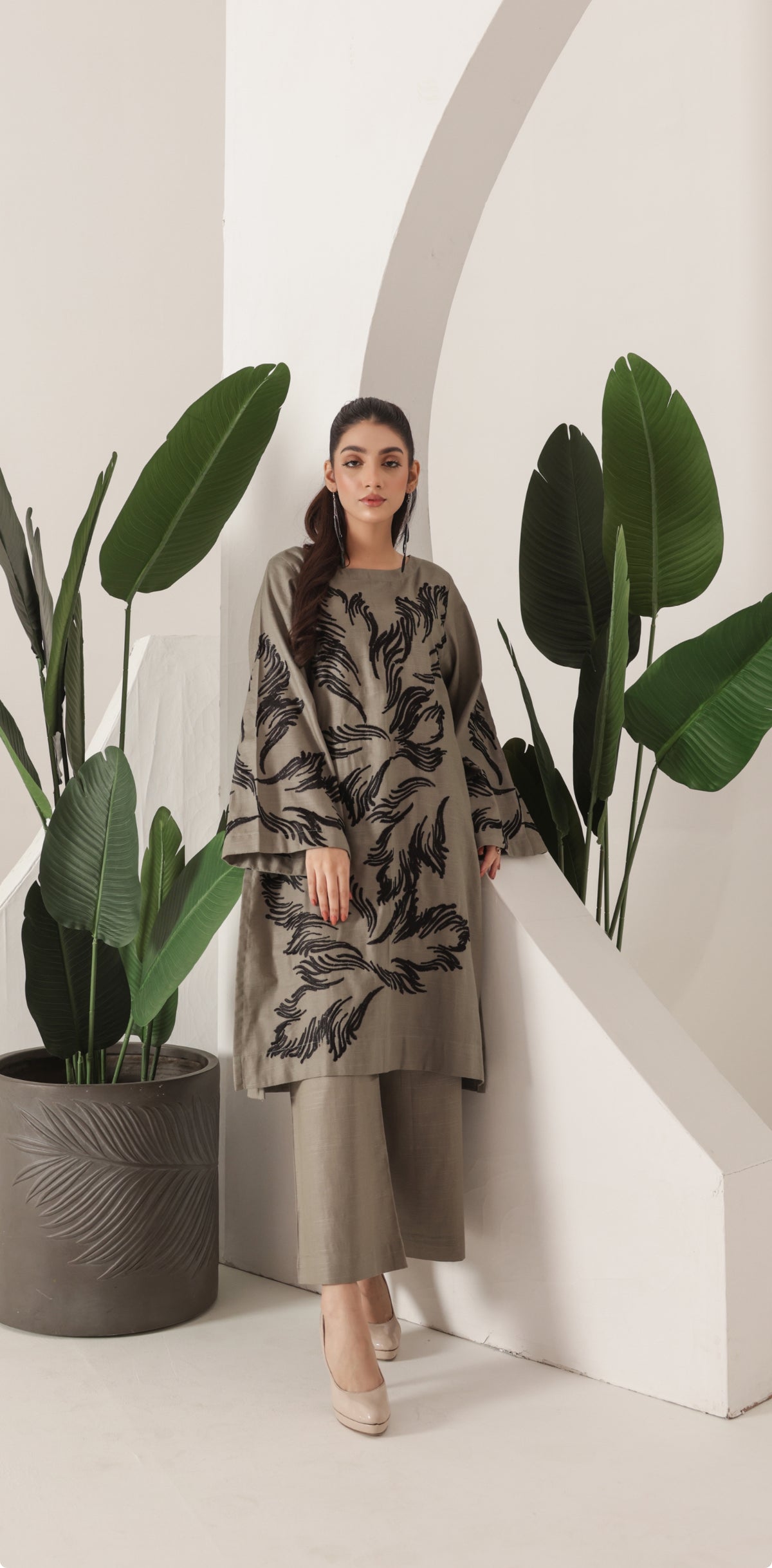 Product Details Embroidered Two Piece  Shirt: Embroidered Shirt Trouser: Dyed Plain Trouser Fabric: Khaddar